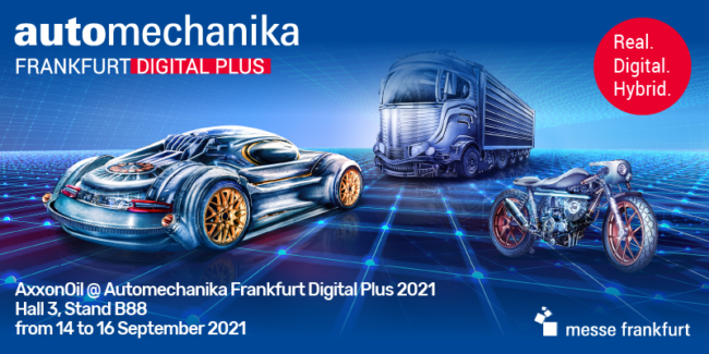 AxxonOil ad Automechanika Francoforte Digital Plus 2021. Padiglione 3, Stand B88. Dal 14 al 16 Settembre 2021.